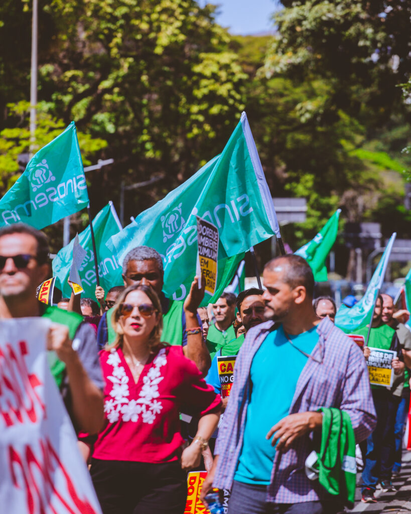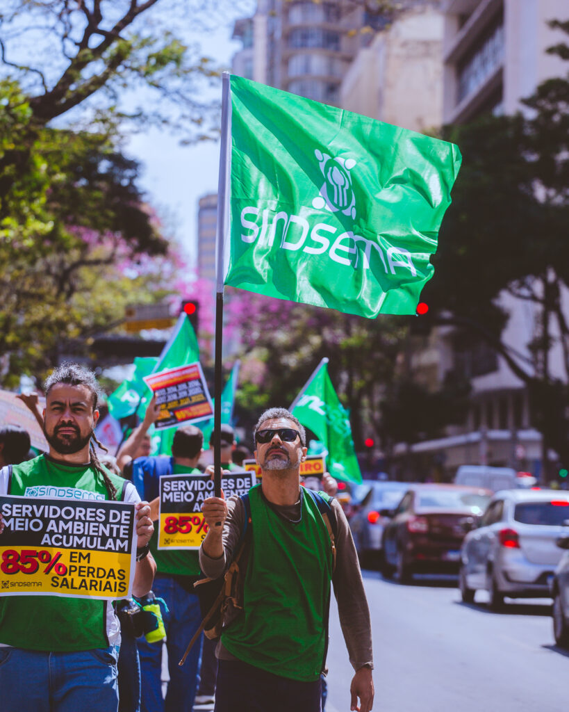 Com uma grande marcha que ocupou mais de dois quarteirões no trajeto feito entre a Praça Afonso Arinos e a Praça Sete, o Sindsema, sindicato que representa a categoria dos servidores do meio ambiente em MG, demonstrou a forte mobilização da categoria e unidade com as organizações populares, sindicais e articulação com o legislativo.