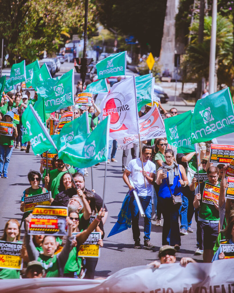 Na terça-feira (19), servidoras e servidores do Sistema Estadual de Meio Ambiente e Recursos Hídricos de Minas Gerais (SISEMA) se reuniram em manifestação histórica na Praça Afonso Arinos, em Belo Horizonte, para uma marcha em defesa do Sisema.