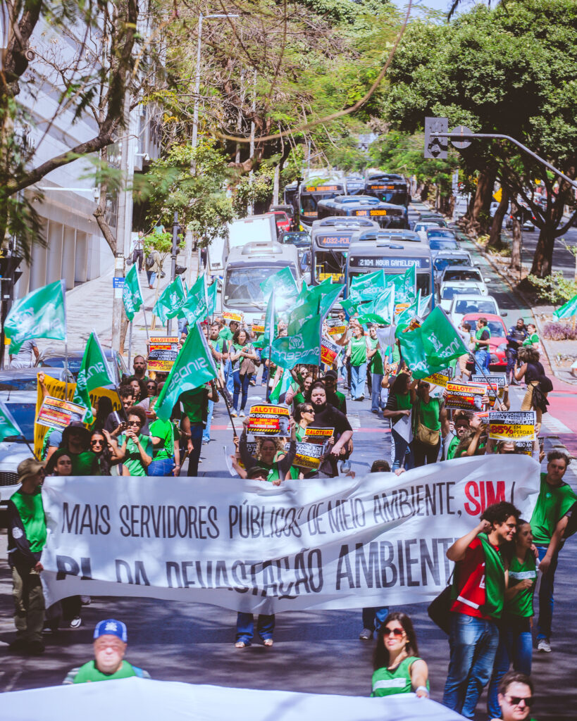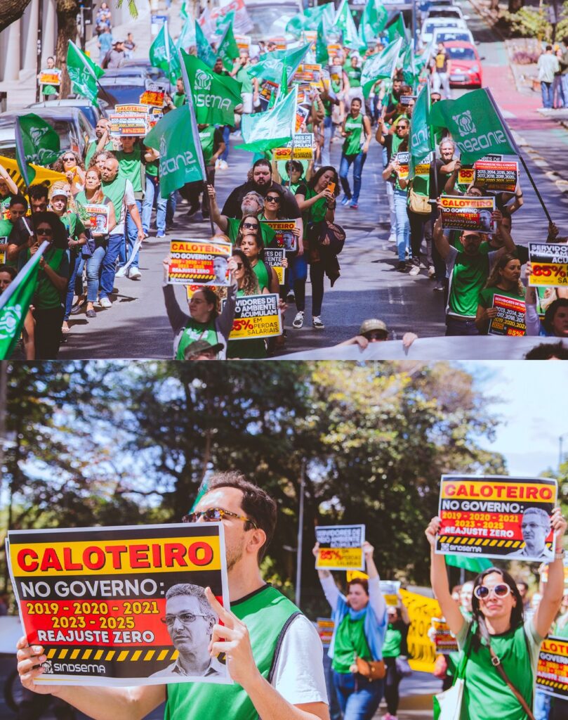 Na terça-feira (19), o Sindicato dos Servidores Públicos do Meio Ambiente de Minas Gerais (SINDSEMA) organizou uma marcha em defesa do SISEMA. A concentração ocorreu na Praça Afonso Arinos e seguiu em direção à Praça Sete, no centro de Belo Horizonte.