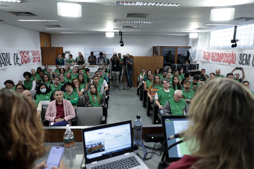 A audiência pública contou com a participação de Maria Aparecida Muniz Jorge, Superintendente Central de Política de Recursos Humanos, representando a Secretaria de Estado de Planejamento e Gestão (SEPLAG) e Renato Alves Pereira, Superintendente de Gestão e Desenvolvimento de Pessoas, representando a Secretaria de Estado de Meio Ambiente e Desenvolvimento Sustentável (SEMAD). Após mais de 4 horas de explanação sobre as condições do SISEMA, os representantes do governo apresentaram, mais uma vez, respostas vazias.